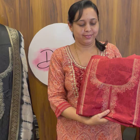Dola silk unstitched dress materials with shibori dupatta